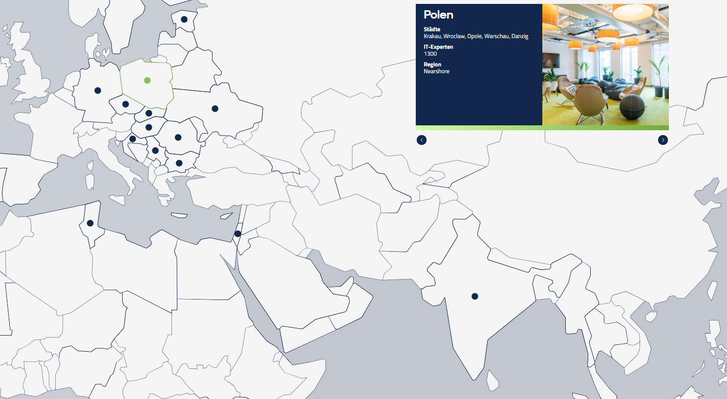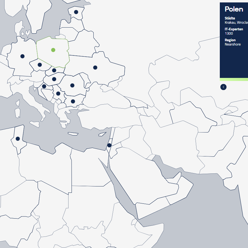 Unsere Kriterien betreffen die technologischen und regionalen Kompetenzen der Anbieter für unsere Zielgruppe in fokussierten Anwendungsfeldern (wie IoT, Mobile Apps, Web Anwendungen, Embedded Software, etc.). Als Ergebnis wurden 12 Entwicklungszentren in den Top-Ländern Polen, Rumänien, Ukraine, Israel und Indien ausgewählt, mit denen wir umfassende Kooperationsverträge abgeschlossen haben. Wir bezeichnen diese als ServiceFactum Bestshorecenter. Seither entwickeln wir diese Partnerschaften durch gemeinsame Projekte kontinuierlich weiter.